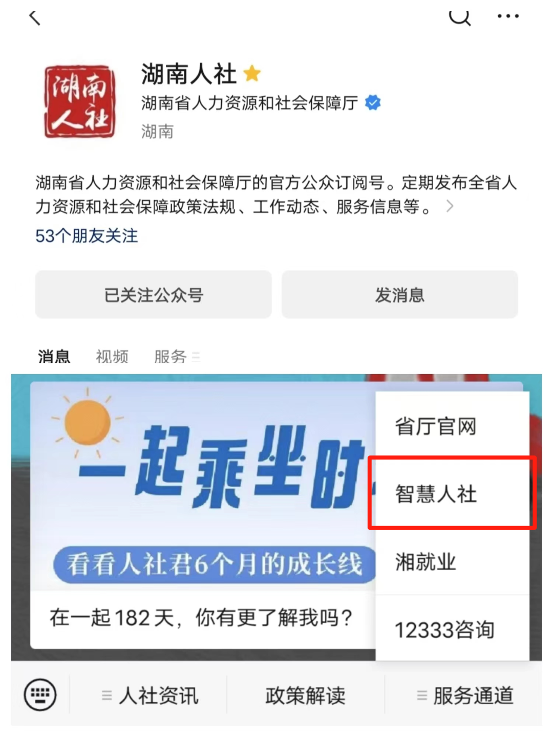2、關(guān)注“湖南人社”“智慧人社”微信公眾號,點(diǎn)擊【服務(wù)通道】→【智慧人社】→【更多】→【社會保險-失業(yè)保險金申領(lǐng)】→【失業(yè)保險金申領(lǐng)】辦理;
